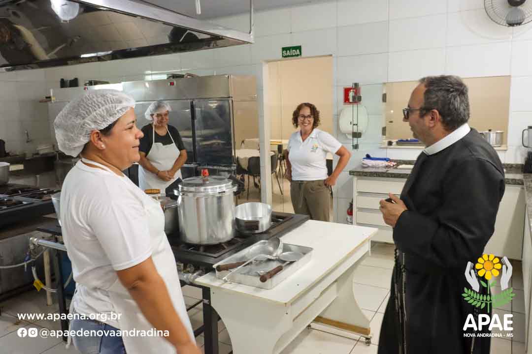 O Padre Celso da Cruz, Reitor do Santuário Diocesano Imaculado Coração de Maria veio conhecer a Instituição APAE, na oportunidade conduziu a benção aos usuários, aos colaboradores e em toda a estrutura física.