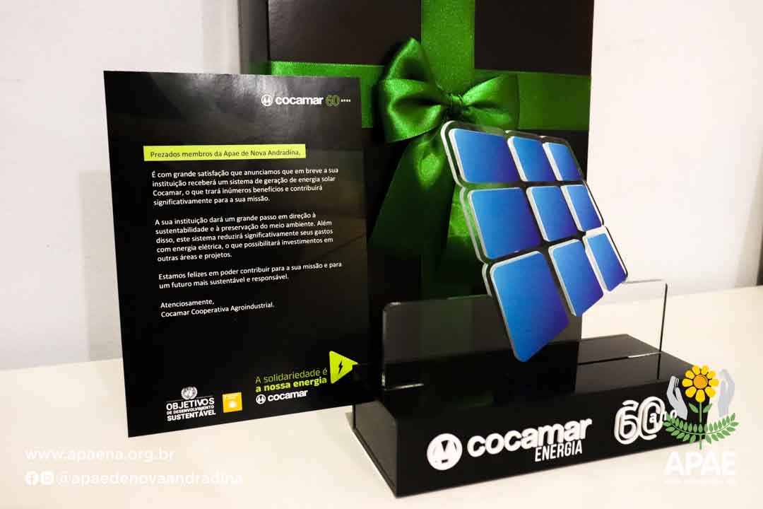 COOPERADOS destinam doação de um Sistema de Geração de Energia solar COCAMAR para APAE de Nova Andradina.